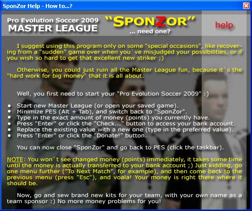 Minimizar PES (Alt + Tab), e voltar para "SponZor".